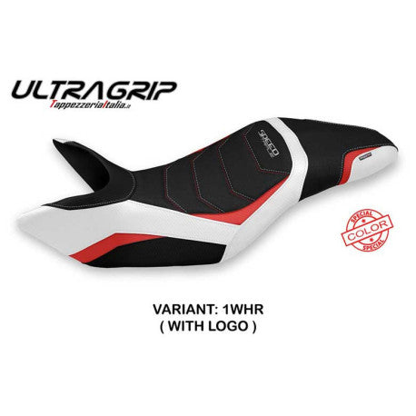 HOUSSE DE SELLE COMPATIBLE TRIUMPH SPEED TRIPLE (11-15) MODÈLE NISKO SPECIAL COLLogo : AVEC LOGO, Couleur : BLANC ROUGE, Type : ULTRAGRIPFrench Mot...