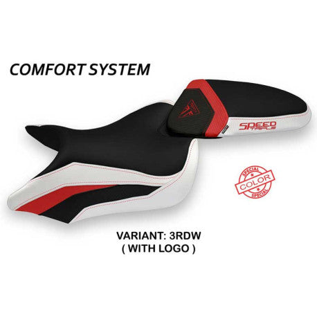 HOUSSE DE SELLE COMPATIBLE TRIUMPH SPEED TRIPLE (16-21) MODÈLE MAGLIE SPECIAL COLogo : AVEC LOGO, Couleur : ROUGE BLANC, Type : CONFORTFrench Moto ...